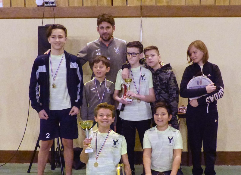 Les 2 équipes minimes regroupées avec leurs trophées
